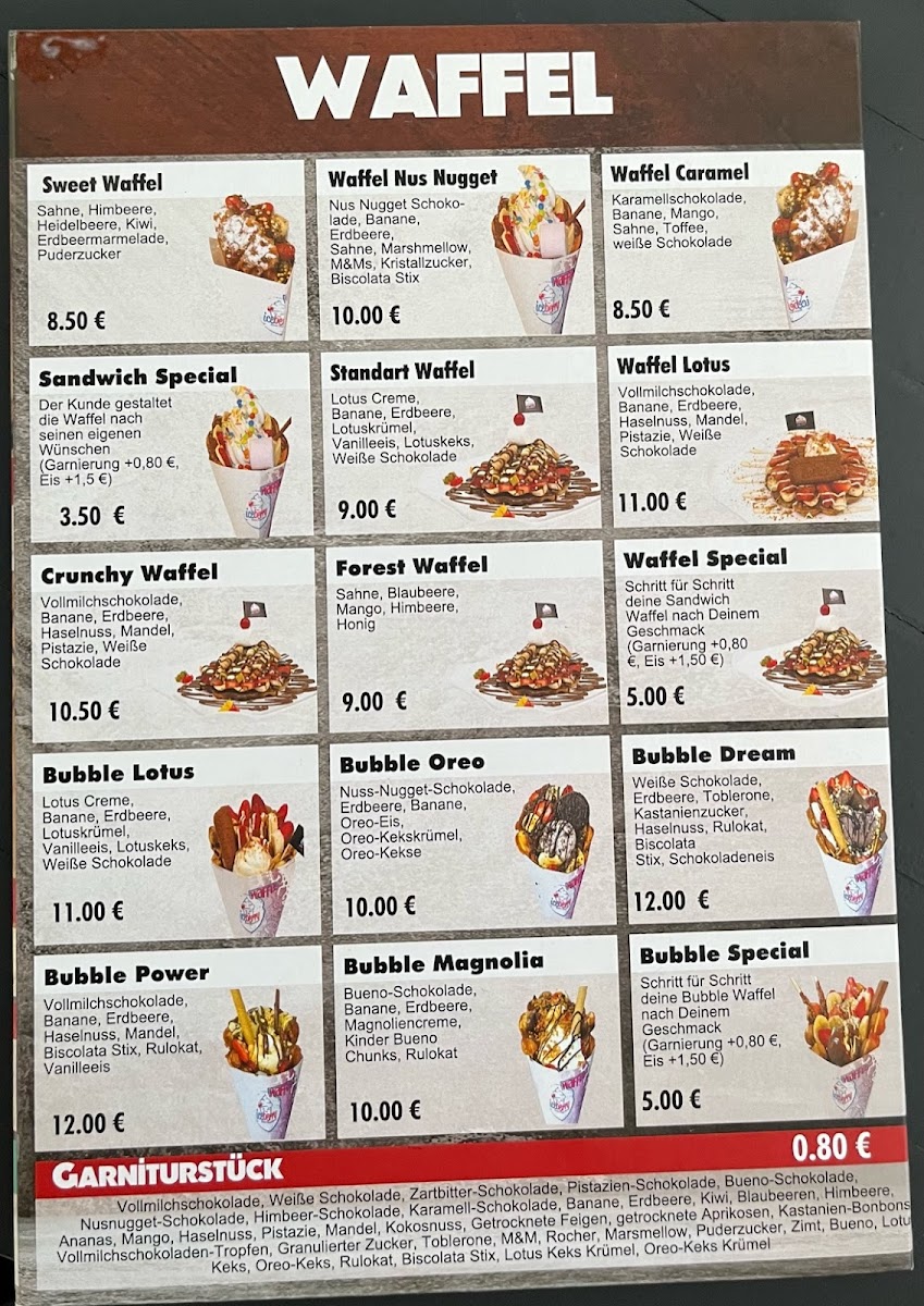 The menu is a celebration of flavors, prominently featuring waffles and ice creams that have patrons raving. Customers like Handan Şevran highlight the overall amazing experience, while Suleyman Gurbanov emphasizes the variety of flavors. The waffles are crispy, hot, and come topped with decadent choices like chocolate, strawberries, and walnuts, creating a delightful harmony of tastes.